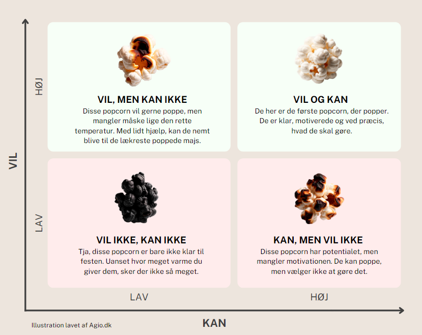 Næste gang du står over for en forandring, enten på arbejdet eller i din dagligdag, tænk på dine popcorn. Hvor vil du investere din tid og energi? Husk, at nogle gange er det okay ikke at få alle til at poppe. Målet er at nyde de popcorn, der er poppede, og ikke ødelægge hele portionen ved at vente for længe.
